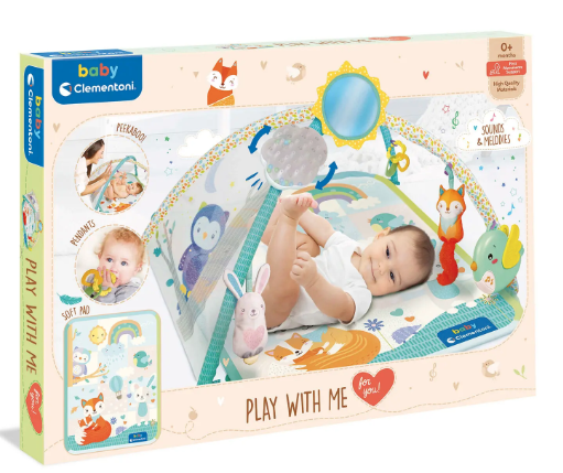 ο μαλακό γυμναστήριο Παίξε μαζί μου περιλαμβάνει μία ηλεκτρονική βάση και πολλές χειρωνακτικές δραστηριότητες με πλαστικά και λούτρινα αξεσουάρ, που προωθούν την πολυαισθητηριακή ανάπτυξη και ενθαρρύνουν την ελευθερία των κινήσεων.