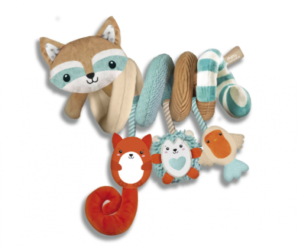 Μαλακό σπιράλ για να το κρεμάσετε γύρο από το τιμόνι του καροτσιού ή της κούνιας. Πολλά διασκεδαστικά ζωάκια με διαφορετικά σχήματα, χρώματα, υλικά και λειτουργίες για να εξερευνήσει το παιδί.