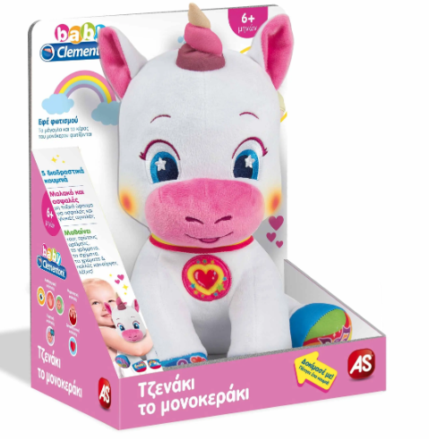 Το Τζενάκι το Μονοκεράκι είναι η πιο γλυκιά παρεούλα για ασταμάτητες αγκαλιές ! Μαλακό λούτρινο με 5 διαδραστικά κουμπιά για να μάθει το παιδί τους πρώτους αριθμούς, τα πρώτα γράμματα, τα σχήματα και τα χρώματα. Το Τζενάκι το Μονοκεράκι βοηθάει το παιδί να αναγνωρίσει πολλές νέες λέξεις χάρη στα χαρούμενα τραγουδάκια και τα αστεία ποιηματάκια.