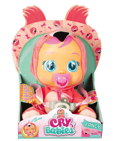Γνωρίστε την Fancy, που όπως ακριβώς το όνομά της είναι πολύ φανταχτερή! Κλαίει αληθινά δάκρυα και κάνει ρεαλιστικούς ήχους μωρού όταν της αφαιρείς την πιπίλα! Δώστε της γλυκές αγκαλιές ή ξαπλώστε την απαλά για να σταματήσει να κλαίει. Φοράει πιτζάμες σαν φλαμίνγκο! Τα Cry Babies είναι τόσο διασκεδαστικά και προωθούν το ευφάνταστο παιχνίδι!