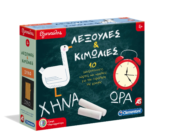 Γράψε, σβήσε, ξαναγράψε. η μάθηση είναι πάντα ένα καινούργιο παιχνίδι! Ένα σετ με 10 μαυροπίνακες και 10 κάρτες με λέξεις που σχετίζονται με τις εικόνες. Χάρη στις κιμωλίες και τη γόμα, το παιδί μπορεί να παίξει ξανά και ξανά!