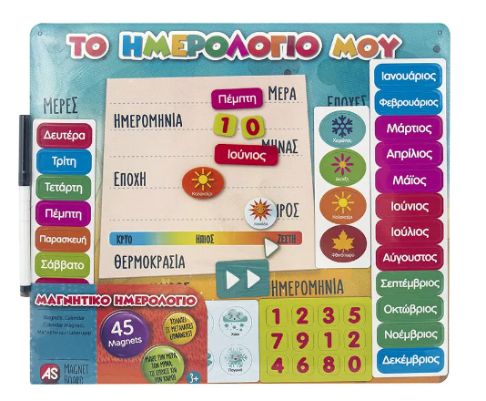 Τηρώντας μία καθημερινή ρουτίνα τα παιδιά μαθαίνουν τις ημέρες της εβδομάδας, τους μήνες, κατανοούν τη χρονική συνέχεια και τέλος αντιλαμβάνονται το χθες, το σήμερα και το αύριο, το παρελθόν και το μέλλον. 45 χάρτινοι μαγνήτες υποστηρίζουν τα παιδιά στην επικοινωνία με τους γύρω τους σχετικά με μελλοντικά συμβάντα που αναμένουν, διακοπές σαββατοκύριακα και πολλά άλλα.