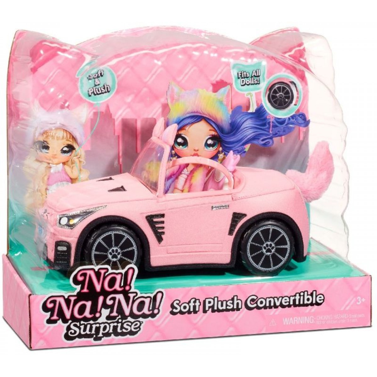 Διαθέτει λεπτομέρειες γάτας όπως μυτούλα, μουστάκια, αυτάκια και ουρίτσα! Αλλά ταυτόχρονα όλα τα αξεσουάρ ενός αυτοκινήτου,όπως τιμόνι και αληθινά κινούμενες ρόδες.Είναι ανοιχτό από πάνω για να βάζετε και να βγάζετε την Na! Na! Na! Surprise κούκλα εύκολα.