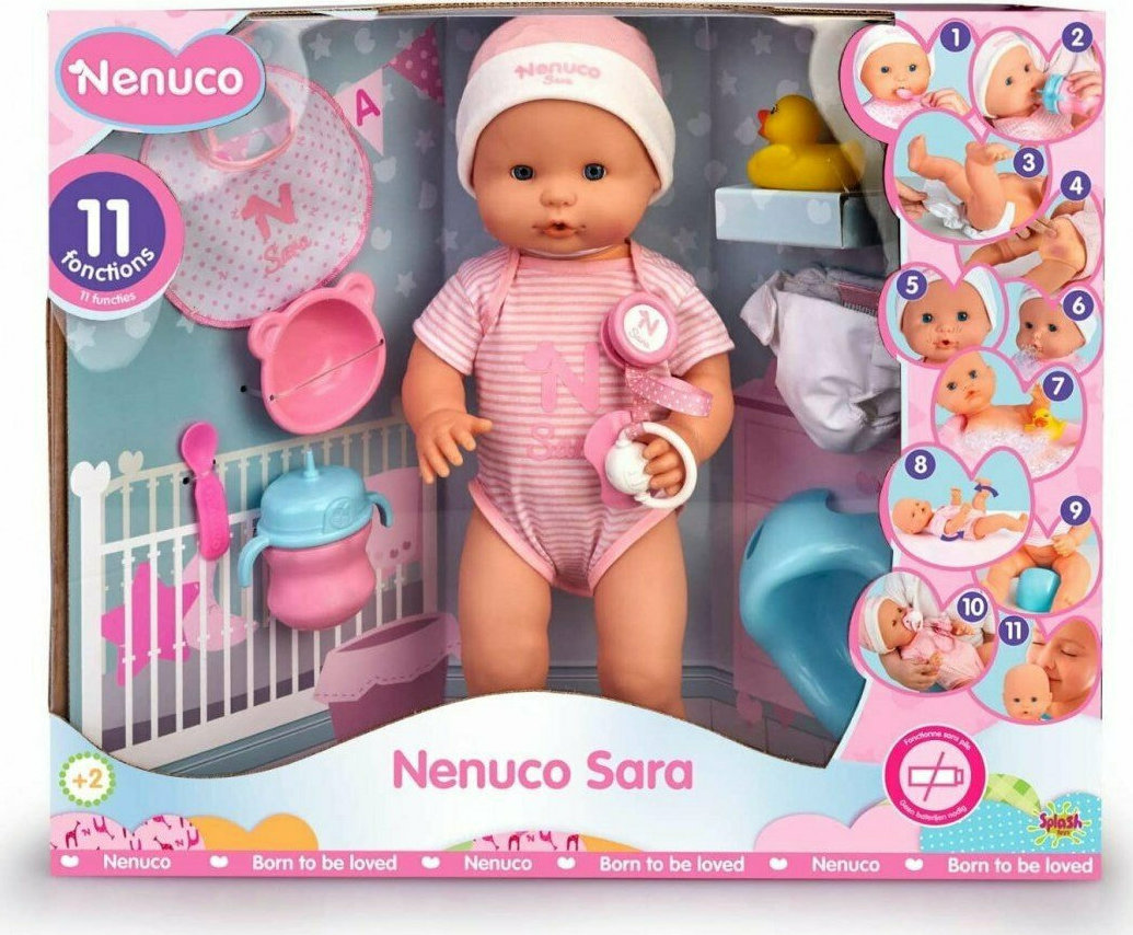Ένα τρυφερό μωράκι που ζητά τη φροντίδα σου! H Nenuco Sara είναι ένα μωράκι σαν αληθινό! Διαθέτει 11 διαφορετικές λειτουργίες και δεν απαιτεί μπαταρίες.