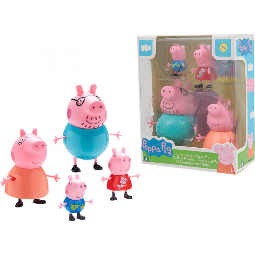 Σετ με 4 φιγούρες των χαρακτήρων της οικογένειας της Πέππα. H Πέππα λατρεύει την οικογένειά της και μαζί της μοιράζεται πάντοτε υπέροχες στιγμές διασκέδασης. Περιέχονται οι Μπαμπάς, Μαμά, Πέππα & Τζορτζ. Ηλικία: 3 ετών και άνω.