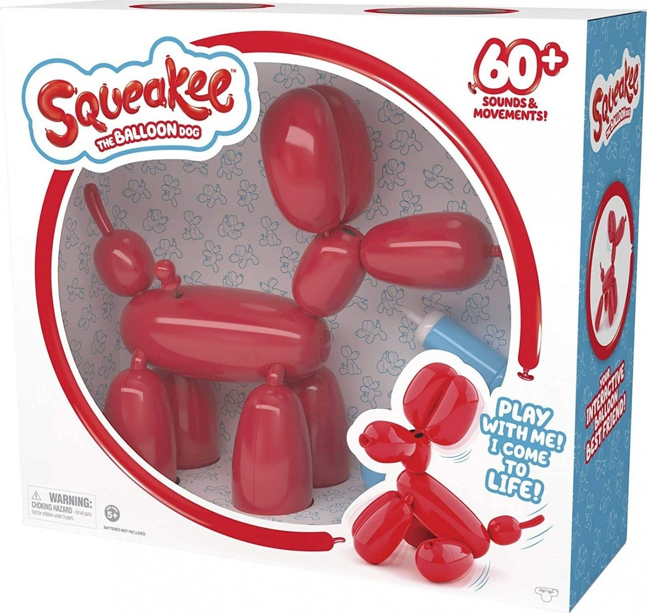 Κάθε συσκευασία περιέχει: 1 διαδραστικό σκυλάκι Squeakee, 1 τρόμπα, 1 πινέζα, 1 μπάλα, οδηγίες χρήσης.