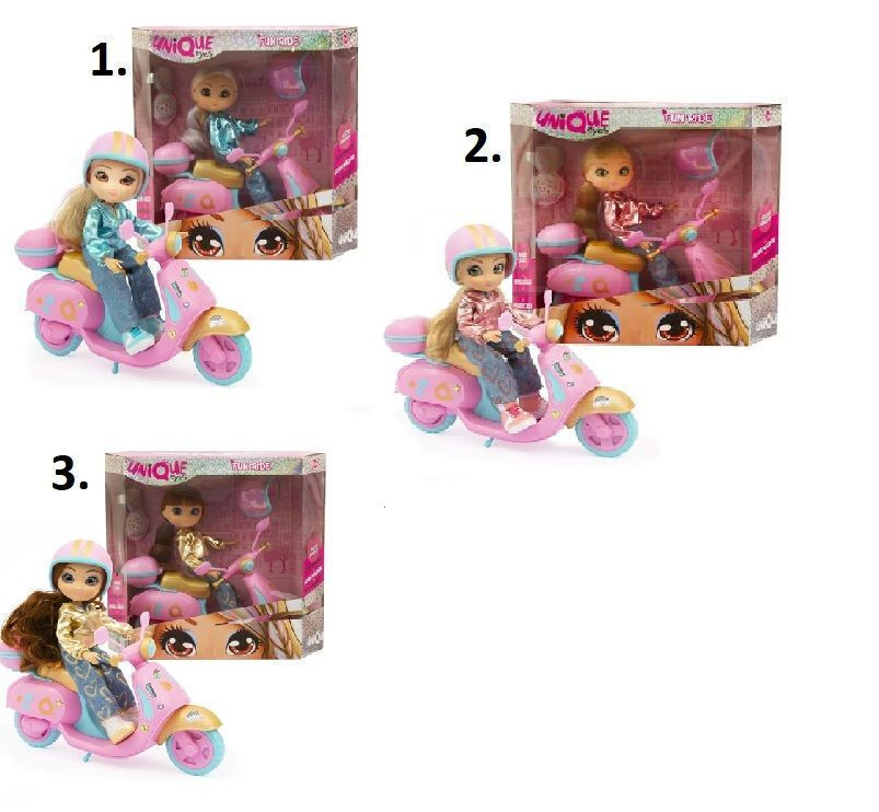 Στο σετ θα βρείτε 1 κούκλα Unique Eyes 25 εκ. με πλήρες σετ ρούχων μαζί με το σκούτερ της, κράνος και πορτ μπαγκάζ. Περιέχονται πολλά αυτοκόλλητα για να διακοσμήσετε το σκούτερ και το κράνος!