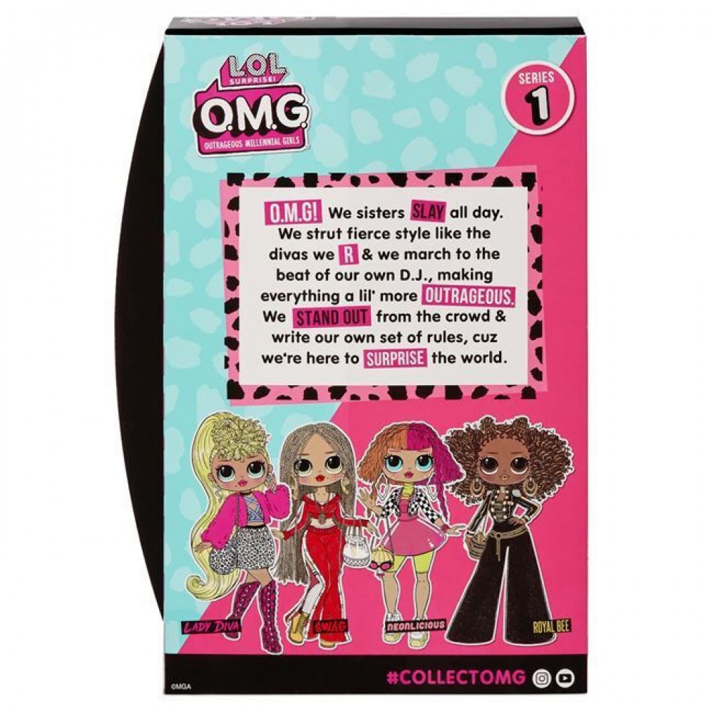 Η οικογένεια των L.O.L. Surprise μεγαλώνει! Ήρθαν οι κουκλες O.M.G., οι μεγαλύτερες αδελφές των L.O.L. Surprise για να μοιράσουν ακόμα περισσότερη λάμψη στον L.O.L. κόσμο! Ντυμένες και χτενισμένες στην τελευταία λέξη της μόδας, το look τους θα συζητηθεί! Έχουν εκρηκτικές προσωπικότητες με glamorous ύφος και ξεχωρίζουν σε κάθε τους βήμα μετατρέποντας τους δρόμους σε πασαρέλα! 4 μοναδικοί χαρακτήρες! Γνώρισε την ROYAL B! Είναι μοντέρνα, θαυμάσια με έντονη προσωπικότητα και στυλ! Της αρέσει να είναι πάντα δίπλα στις φίλες της και να τους βοηθάει όπου την χρειάζονται! Γνωρίζει πολύ καλά πως μπορείς να καταφέρεις τα πάντα όταν πιστεύεις στον εαυτό σου και αυτό λέει και στις φίλες της! Κούκλα-μόδας O.M.G. LoL Surprise με μοναδικό στυλ, χτένισμα και αξεσουάρ! Διαθέτει πολλαπλές αρθρώσεις για τις πιο μοδάτες πόζες! Περιεχόμενα Κούκλα Royal Bee (ύψους 23 εκ.), 1 σύνολα ρούχων, 1 ζευγάρι παπούτσια, αξεσουάρ, καπελοθήκη, βούρτσα, βάση κούκλας. Κάθε κούκλα είναι η αδερφή ενός δημοφιλούς L.O.L. Surprise χαρακτήρα. Με επαναχρησιμοποιούμενη συσκευασία που λειτουργεί ως Playset.