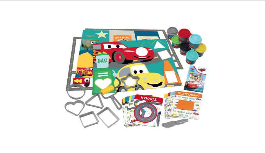 Με τους μεγάλους κόφτες σχημάτων, τις ανθεκτικές κάρτες εκμάθησης διπλής όψης και τα δύο ταμπλό παιχνιδιού 2 όψεων, τα παιδιά μπορούν να αντιληφθούν εύκολα τις έννοιες των σχημάτων, αλλά και των χρωμάτων. Με 6 τρόπους παιχνιδιού, ξεκινήστε μαθαίνοντας τα σχήματα και τα χρώματα αλληλοεπιδρώντας, με τη χρήση πλαστελίνης επάνω στις εικονογραφημένες κάρτες. Στη συνέχεια συσχετίστε τα σχήματα και τα χρώματα με αγαπημένα αντικείμενα από τον κόσμο των Cars.