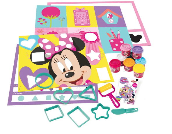 Με τους μεγάλους κόφτες σχημάτων, τις ανθεκτικές κάρτες εκμάθησης διπλής όψης και τα δύο ταμπλό παιχνιδιού 2 όψεων, τα παιδιά μπορούν να αντιληφθούν εύκολα τις έννοιες των σχημάτων, αλλά και των χρωμάτων. Με 6 τρόπους παιχνιδιού, ξεκινήστε μαθαίνοντας τα σχήματα και τα χρώματα αλληλοεπιδρώντας, με τη χρήση πλαστελίνης επάνω στις εικονογραφημένες κάρτες. Στη συνέχεια συσχετίστε τα σχήματα και τα χρώματα με αγαπημένα αντικείμενα από τον κόσμο της Minnie.