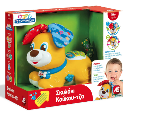 Με το σκυλάκι Κούκου-Τζα θα παίξετε το πιο συναρπαστικό κρυφτό! Ένα χαριτωμένο σκυλάκι με 2 απαλά διαδραστικά αυτιά για να παίζει κρυφτό με το παιδί. Μιλάει, τραγουδάει και κινείται πέρα δώθε. Χάρη στα 3 εκπαιδευτικά κουμπιά, διδάσκει αριθμούς, χρώματα, ζώα και τους ήχους τους. Με διακόπτη τροφοδοσίας, για να επιλέξετε τη λειτουργία με ή χωρίς μηχανισμό.