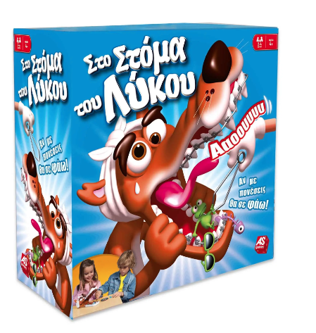 Ο λύκος έχει φάει σχεδόν τα πάντα, με αποτέλεσμα πολλά αντικείμενα να κολλήσουν στα δόντια του. Χρειάζεται βοήθεια! Γύρισε τον τροχό και βγάλε το αντίστοιχο χρωματιστό αντικείμενο από το στόμα του λύκου με την τσιμπίδα Πρόσεξε όμως, δεν πρέπει να αγγίξεις τα μεταλλικά του σιδεράκια, γιατί θα πονέσει, θα φωνάξει και θα κλείσει λιγάκι το στόμα του, δυσκολεύοντάς σε να αφαιρέσεις τα υπόλοιπα! Αν τον πονέσεις 5 φορές, θα κλείσει εντελώς το στόμα του και το παιχνίδι θα τελειώσει. Ο παίκτης που θα βγάλει τα περισσότερα αντικείμενα από το στόμα του λύκου, κερδίζει το παιχνίδι!