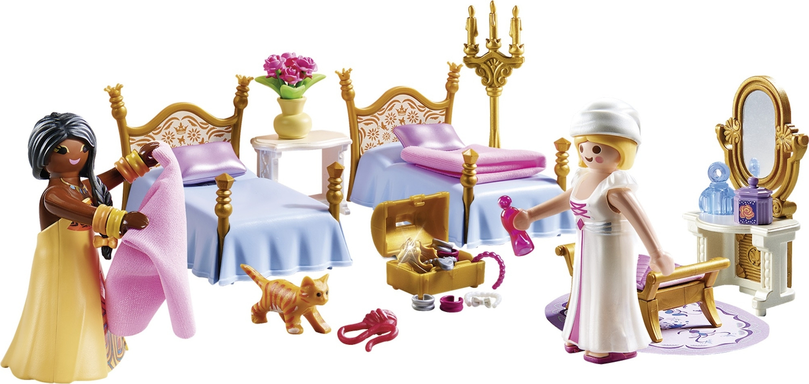 Ώρα για ύπνο! Οι πριγκίπισσες ξεκουράζονται στα άνετα κρεβάτια τους. Περιλαμβάνει μπουντουάρ, νυχτικά, κοσμήματα και χαριτωμένα γατάκια.