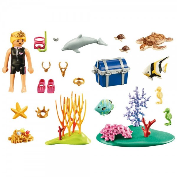 Υπάρχουν πολλά μυστικά να ανακαλύψετε στο βυθό της θάλασσας. Η περιπετειώδης δύτρια της Playmobil θα ήθελε πολύ να βρει κάποιο πολύτιμο θησαυρό. Τι μπορεί να υπάρχει στο μεγάλο σεντούκι;